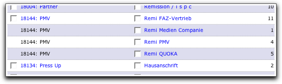 Eine Übersicht über alle noch nicht gemeldeten Remissionen kann hier verlagsweise angezeigt werden. Die Aufstellung erfolgt dabei immer aktuell und berücksichtigt dabei auch Remissionen, die in diesem Moment verbucht werden. Die Anzeige erfolgt für jeden Verlag unter Umständen mit jeder separaten Adresse und zeigt die Anzahl der Zeilen, somit also Ausgaben an. Über die Anwahl der einzelnen Verlage/Anschriften und abschließender Bestätigung über Remissionsscheine erstellen am oberen Bildrand werden die Remissionsaufstellungen erzeugt und sowohl im ISPC-Format als auch via e-mail, falls notwendig, verschickt.